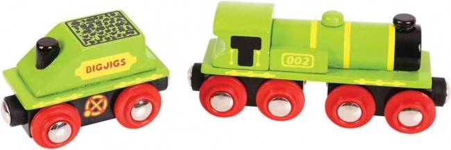 Bigjigs Rail zelená lokomotíva s tendrom a koľajnicami