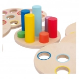 Táto logická nasúvacia hra z dreva je ideálnou pomôckou pre rozvoj motoriky a koordinácie u detí. Pevné kotúče a farebné tyče prinášajú zábavu pri skladaní.