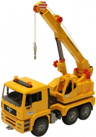 Žeriavový voz BRUDER MAN TGA prináša deťom autentický zážitok zo stavebnej prevádzky. Sklápacia kabína umožní nahliadnuť do motora, sklopné zrkadlá uľahčia manévrovanie a otočný žeriav s výsuvným ramenom spoľahlivo zvládne každý „zdvih“. Vďaka mäkkým profilovaným pneumatikám je jazda plynulá a stabilná, oporné nohy zabezpečia bezpečné státie pri práci.
