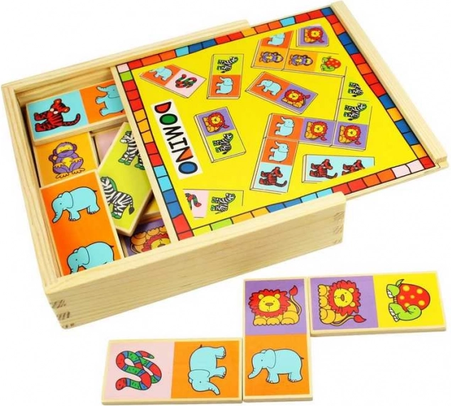 Drevené domino so zvieratkami prináša deťom zábavnú formu učenia aj hry. Vďaka 28 dielikom s veselými motívmi zvierat si deti precvičia priraďovanie, sústredenie a jemnú motoriku. Praktická drevená škatuľka s posuvným vekom zaistí, že budú všetky dieliky vždy pokope.