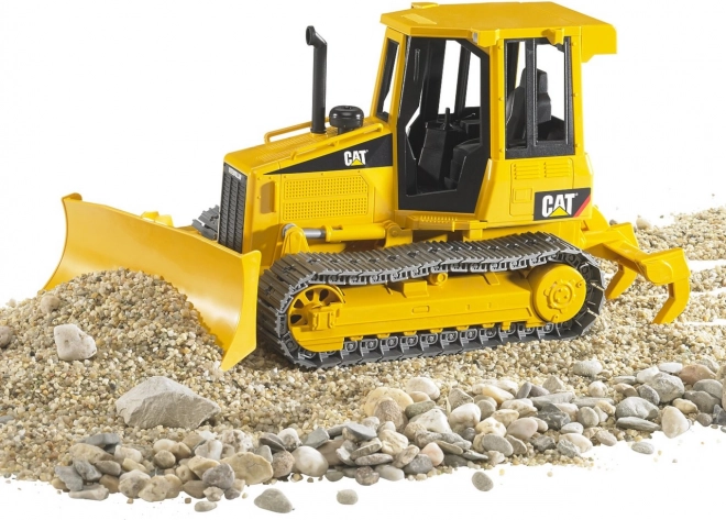 Model s detailným spracovaním charakteristickým pre stroje značky CAT, vrátane gumených pásov a veľkej pohyblivej radlice.