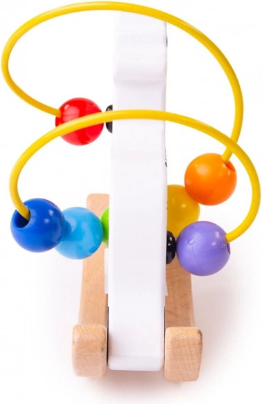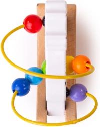 Vďaka pevnej drevenej základni a hladkým hranám je hračka odolná a príjemná na dotyk. Farebné koráliky stimulujú zmysly a podporujú rozpoznávanie farieb. Ideálna do detskej izby aj ako cestovná aktivita.