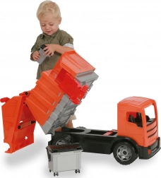 Toto veľké oranžové smetiarske auto inšpirované skutočným modelom MERCEDES ACTROS prináša do detskej izby autentické zážitky. Dva nezávislé výklopné mechanizmy a priložené koše umožňujú napodobniť skutočný zber a vysýpanie odpadu. Odolné prevedenie zo špičkového plastu spĺňa európske normy a zvládne aj náročnejšie zaobchádzanie.