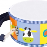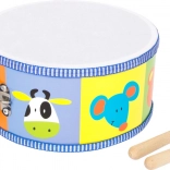Farebný detský bubon s motívom zvierat od značky Small Foot je ideálny pre rozvoj rytmu a koordinácie u detí. Obsahuje dve drevené paličky a nastaviteľný popruh pre ľahké prenášanie.
