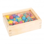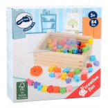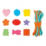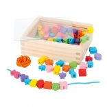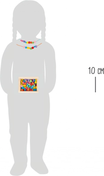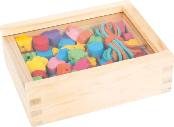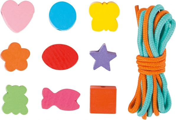 Malí tvorcovia si môžu s touto drevenou sadou užiť hodiny zábavy. Krabička obsahuje 81 farebných korálok a 2 šnúrky, ktoré dovolia deťom vytvárať rozmanité šperky podľa ich predstáv.