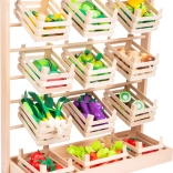 Praktický drevený predajný stojan small foot s 12 prepravkami je ideálny do detských obchodov a kuchyniek. Ponúka stabilnú konštrukciu, dostatok úložného priestoru a podporuje role-play hru aj rozvoj sociálnych zručností. Ovocie a zelenina nie sú súčasťou balenia.