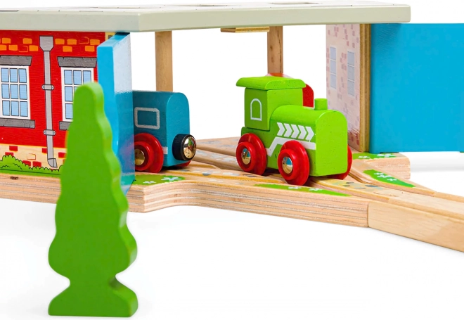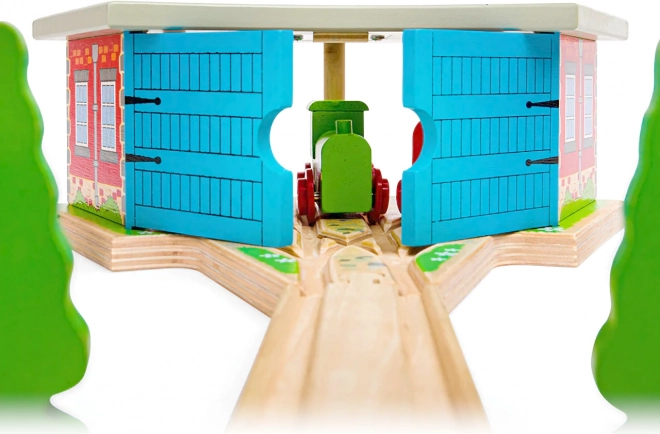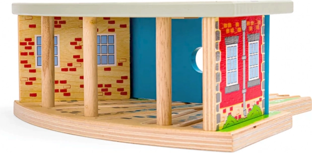 Depo je plne kompatibilné s väčšinou bežných drevených systémov, takže ho ľahko zapojíte do existujúceho sveta koľají. Hra s depom rozvíja predstavivosť, jemnú motoriku aj koordináciu.