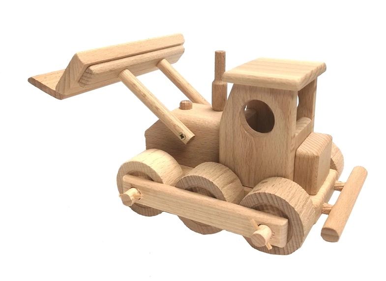 Klasický drevený buldozér z kvalitného bukového dreva pre malých staviteľov. Má pohyblivú radlicu, otáčajúce sa kolieska a zaoblené hrany pre bezpečnú hru. Povrch je len voskovaný a leštený bez chemických úprav, takže si zachováva prírodný vzhľad. Ideálny na imaginatívnu hru doma aj na pieskovisku.