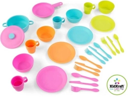 Detský set kuchynského riadu KIDKRAFT BRIGHT prináša deťom realistickú hru na varenie a stolovanie. Vďaka 27 dielom si malí kuchári užijú veľa zábavy pri servírovaní obľúbených jedál. Odolný a bezpečný plast sa ľahko udržiava a je vhodný na každodenné hranie.
