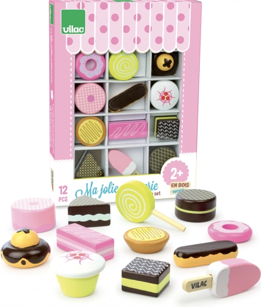 Doprajte malým cukrárom a kuchárkam radosť z hry so sadou drevených sladkostí VILAC. Farebné zákusky a dobroty vyzerajú ako skutočné, skvelo sa hodia do detskej kuchynky aj na hru na obchod a príjemne rozvíjajú fantáziu aj jemnú motoriku.