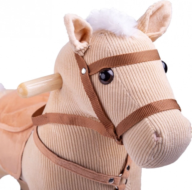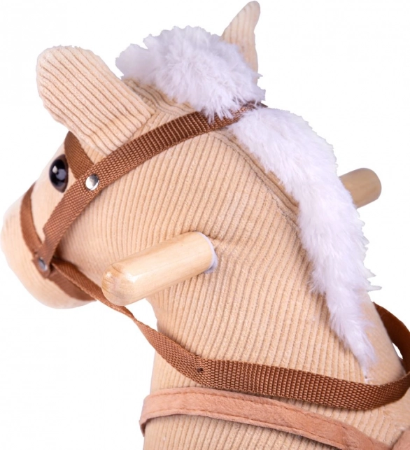 Béžový hojdací kôň je navrhnutý tak, aby deťom poskytol bezpečnú a pohodlnú jazdu. Mäkké sedlo a uzdička z jemného manšestru lákajú k dotyku a hra tak rozvíja nielen predstavivosť, ale aj motorické zručnosti. Robustná drevená základňa zaisťuje isté hojdanie bez neželaného kývania.