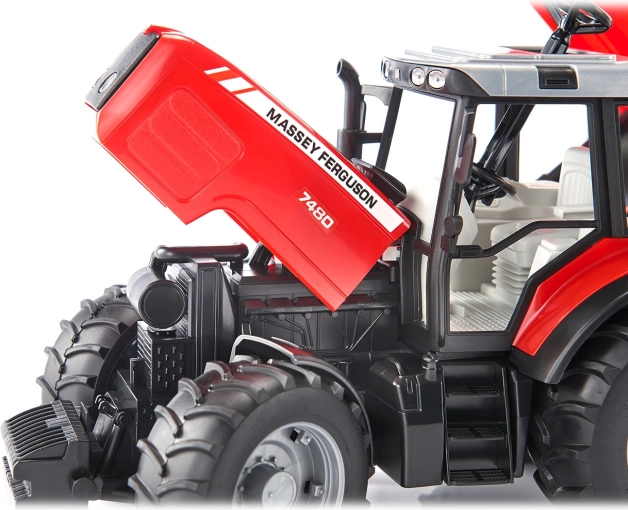 Užite si realistickú hru na farmu s traktorom MASSEY FERGUSON 7480 a sklápacej valníkom. Model v mierke 1:16 zaujme precíznym spracovaním, funkčným riadením ovládaným predĺženým volantom cez strechu kabíny a otváracími prvkami, vďaka ktorým nahliadnete pod kapotu aj do kabíny.