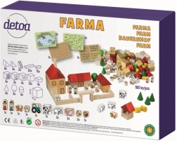 Táto drevená stavebnica obsahuje rôzne tvary, farby a veľkosti dielcov, ktoré deťom umožňujú tvoriť vlastnú farmársku scenériu. Diely potlačené atraktívnymi ikonami predstavujú vidiecke motívy, najmä zvieracie figúrky, a tým podporujú detskú kreativitu.