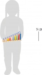 Toto drevené počítadlo rozvíja logické myslenie, jemnú motoriku aj vzťah k matematike hravou formou. Vďaka farebným korálikom na pevných kovových oblúkoch deti ľahko pochopia princípy sčítania a odčítania. Na vnútornej drevenej stene nájdu vyryté príklady, ktoré môžu hneď prakticky riešiť posúvaním korálikov.