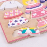 Bigjigs Baby obliekanie puzzle dievčatko ponúka skvelú príležitosť pre rozvoj detskej zručnosti a predstavivosti. Každý malý módny návrhár môže voľne kombinovať oblečenie podľa svojej fantázie.