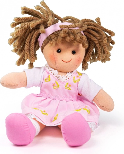Látková bábika Rose sa pýši svojimi krásne navrhnutými ružovými šatami s kvetinovými výšivkami a krajkovým lemom. Jej mäkké a bezpečné telo spája deti s tradičnou hrou a učí ich starostlivosti a zodpovednosti. Rose má vymeniteľné oblečenie, čo umožňuje personalizáciu a rozširuje detskú kreativitu.