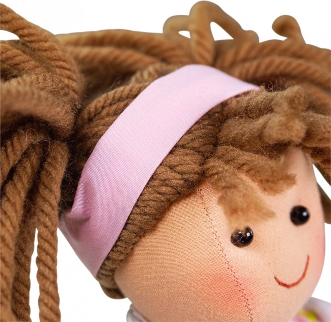 Bábika je vyrobená z mäkkých textilných materiálov, čo z nej robí perfektného spoločníka pre najmenšie deti.