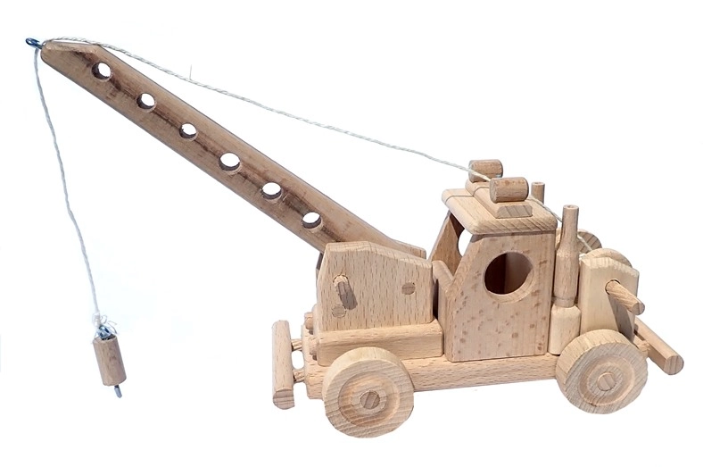 Žeriav je vybavený funkčným ramenom a háčikom na šnúrke na zdvíhanie drobných predmetov – ideálne na rozvoj fantázie a jemnej motoriky.