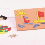Korková doska, drevené tvary, kladivko, pripináčiky, predlohy
