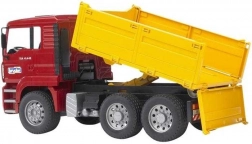 Podobne ako skutočné stroje, tento model ponúka odklápaciu kabínu a plne funkčný sklápač.