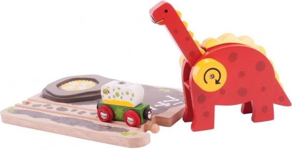Dinosauří žeriav Bigjigs Rail prináša na vašu drevenú vláčikodráhu dávku dobrodružstva. Deti pomocou pohyblivého krku dinosaura a magnetu premiestňujú dinosauřie vajce na priložený vagónik a trénujú koordináciu ruka–oko. Pestrofarebné prevedenie a pevná drevená konštrukcia lákajú k fantazijnej hre, ktorá vydrží.