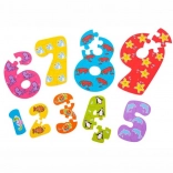Táto sada vzdelávacích puzzlí učí deti rozpoznávať číslice a priraďovať k nim množstvo. Každé číslo sa skladá zo zodpovedajúceho počtu dielikov (napr. číslo 4 má štyri dieliky) s veselým zvieracím motívom, čo podporuje prirodzené učenie aj radosť zo skladania.