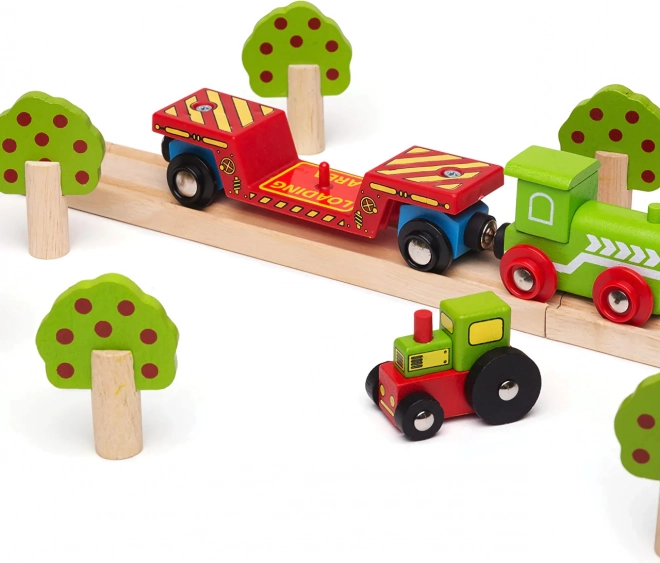 Súčasťou balenia sú navyše dve koľajnice (krátka koľajnica BJT101 a spojka BJT104), ktoré uľahčia prepojenie tratí a tvorbu nových trás. Set je vyrobený z kvalitného dreva s kovovými prvkami a magnetmi, spĺňa aktuálne európske bezpečnostné normy a rozvíja predstavivosť, jemnú motoriku aj koordináciu.