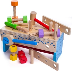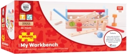 Hračka Bigjigs Toys prináša kvalitný drevený stolík s náradím, ktorý zábavnou formou podporuje kreatívne schopnosti a rozvoj motoriky u detí. Obsahuje kladivo, kľúč a rôzne skrutky, ktoré deti môžu jednoducho použiť pre rôzne stavebné aktivity.