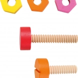 Farebné drevené skrutky a matice slúžia na precvičovanie jemnej motoriky a tréning koordinácie ruka-oko.