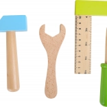 Praktický drevený pás na náradie pre deti od Small Foot s nastaviteľnou dĺžkou je ideálny pre malých kutilov. Obsahuje farebné lakované drevené náradie ako kladivo, skrutkovač, kľúč a ďalšie hračky.