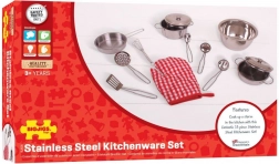 Profesionálne vyzerajúca detská sada kuchynského riadu z kovu poteší malých kuchárov a podporí ich fantáziu. Obsahuje 13 dielov vrátane praktickej chňapky, spĺňa európske bezpečnostné normy a je ideálna na hru na varenie. Odolný kov, rozvoj kreativity a motoriky, skvelá hra na role.