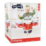 Peť bubnov, činél, stojan a dve paličky – všetko, čo vaše dieťa potrebuje k prvým rytmom a hudobnému objavovaniu.
