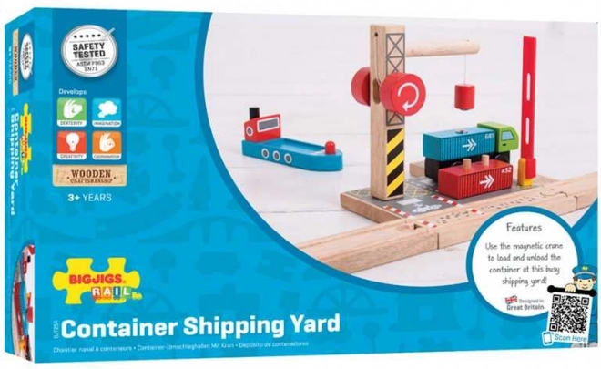 Drevené kontajnerové prekladisko BIGJIGS RAIL premení detskú izbu na rušný prístav. Vďaka magnetickému žeriavu, autu a kontajnerom deti ľahko prekladajú náklad z auta či vagónika na loď, rozvíjajú predstavivosť, jemnú motoriku a koordináciu. Kompatibilné s väčšinou drevených vláčikodráh na trhu.
