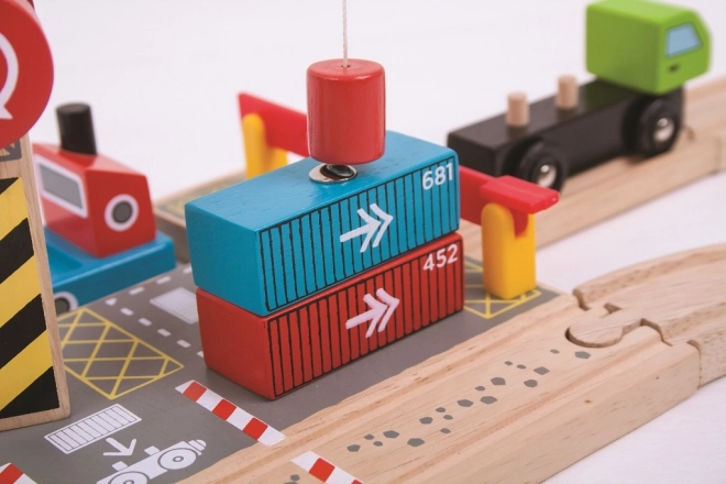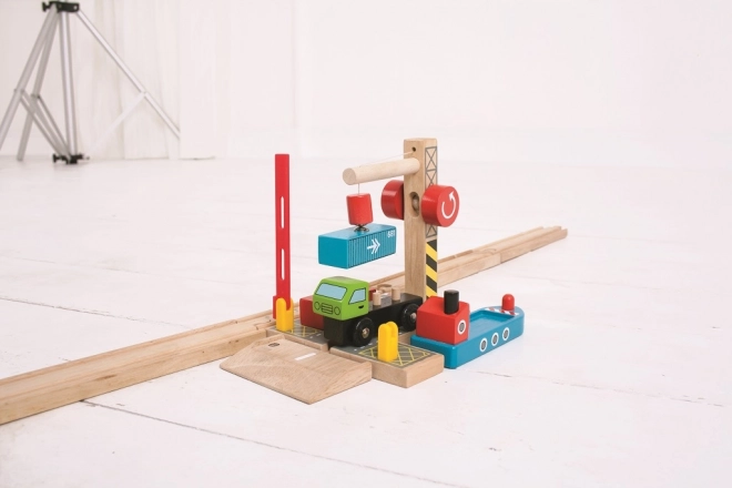 Objavte parádne drevené prekladisko s funkčným magnetickým žeriavom, ktoré deťom priblíži svet prístavov a železnice. Set obsahuje drevené nákladné auto s kontajnermi a robustný žeriav pre jednoduché nakladanie a vykladanie. Celé prevedenie je bezpečné, odolné a láka k otvorenej hre.