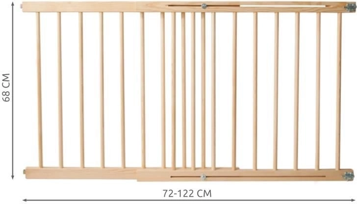 Táto univerzálna bránka z kvalitného smrekového dreva je navrhnutá na bezpečné oddelenie priestorov v domácnosti. Šírka 72–122 cm umožňuje montáž do väčšiny štandardných priechodov a na schodiská. Zaoblené hrany a precízne vyleštený povrch zvyšujú bezpečnosť a komfort každodenného používania.