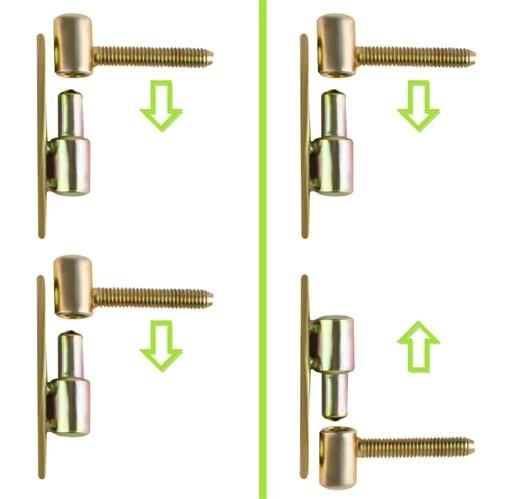 - 1× bránka, 2× čapové pánty, 12× malé skrutky, 4× stredné skrutky (na drevo), 2× podkovičky na bočné istenie, 2× skrutka s polguľatou hlavou, 2× široké podložky, 2× matica motýľok, 2× posuvné západky s dvojitým zabezpečením