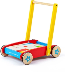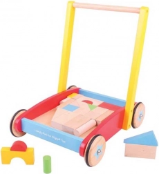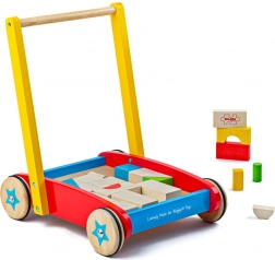 Kočík na tlačenie slúži nielen ako opora pri chôdzi, ale aj ako mobilný úložný priestor pre kocky rôznych tvarov a veľkostí. Hra s kockami posilňuje koordinačné schopnosti, priestorovú predstavivosť a základné stavebné zručnosti.