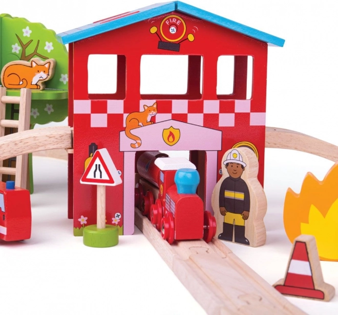 BIGJIGS RAIL drevená vláčikodráha – hasičská stanica