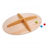 Balančná doska je vyrobená z certifikovaného, prírodného dreva a ponúka ekologickú a odolnú konštrukciu. Deti môžu stáť na oválnej plošine a pokúšať sa vyvažiť telom pri vedení farebnej guľôčky cez vyrezávaný labyrint. Tento pútavý spôsob hry podnecuje k súťaži a rozvoju kľúčových motorických zručností.
