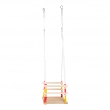 Bezpečná a stabilná drevená hojdačka pre menšie deti so zábranou a nastaviteľnou dĺžkou lán. Kvalitné masívne drevo, pevné plastové laná s krúžkami na jednoduché zavesenie a nosnosť 30 kg – pripravená na použitie ihneď po vybalení.