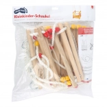 drevo, plastové laná, kovové krúžky/prieťahy