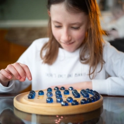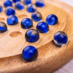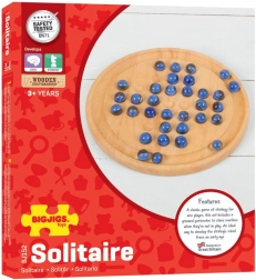 Objavte nadčasovú zábavu s dreveným solitérom BIGJIGS TOYS. Lesklé modré guľôčky a starostlivo opracovaná kruhová doska vytvárajú elegantnú logickú hru, ktorá preverí váš dôvtip aj trpezlivosť. Cieľom je preskakovaním guľôčok po jednej nechať na doske jedinú guľôčku.