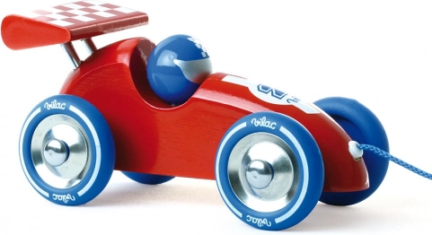 Štýlové ťahacie závodné autíčko z lakovaného dreva v červeno-modrej kombinácii poteší malých pretekárov od 1 roka. Má pogumované kovové kolesá pre tichú a istú jazdu, pevnú šnúrku na ťahanie a kvalitné spracovanie VILAC. Ideálne na rozvoj rovnováhy a koordinácie pohybov a na zábavu doma aj na cestách. Vyrobené vo Francúzsku.