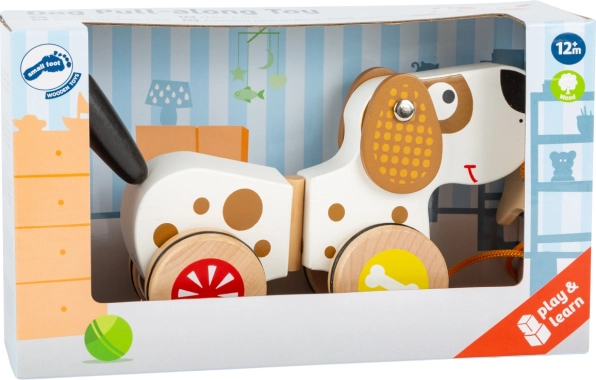 Pes má tichý chod vďaka gumeným krúžkom na kolesách, čo zabezpečí pokojný pohyb po akomkoľvek povrchu. S chvostom, ktorý sa veselo kýva pri ťahaní, a kostičkou ako odmenou pre psíka, ponúka nekonečné možnosti pre hru a zábavu.