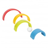 Táto robustná drevená dúha je perfektná pre najmenších. Vďaka živým farbám láka deti k hre a rozvíja ich jemnú motoriku i kreatívne myslenie. Každá sada obsahuje bielu guličku, ktorá dopĺňa celkový dojem a ponúka ďalšie možnosti k hre.