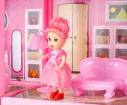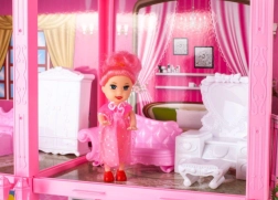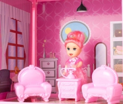 Súčasťou balenia je kompletné vybavenie: posteľ, pohovky, kresielka, toaletný stolík, skriňa, komoda, lampička a ďalšie. Deti si môžu interiér ľubovoľne prestavovať.
