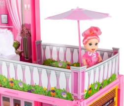 Domček ponúka priestranný balkón so slnečníkom – ideálne miesto na oddych bábiky aj vonkajšie posedenie. Skvelé na tvorenie príbehov a scén z každodenného života.