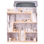 Dom má až štyri podlažia a ponúka veľa priestoru na hranie! Drevená terasa na hornom poschodí dodáva celému domu čaro. Medzi mnohými rôznymi miestnosťami sa nachádza kúpeľňa, pracovňa, obývacia izba, jedáleň s kuchynským kútom a spálňa. Každá z nich je plne vybavená a pripravená privítať novú rodinu bábik. Vďaka veľkým rozmerom sa dovnútra zmestia nielen tie najmenšie bábiky, takže sa nemusíte báť, že by sa obľúbený kamarát vášho dieťaťa nezúčastnil zábavy!