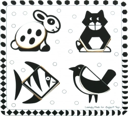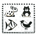 - Kontrastné čiernobiele prevedenie – ideálne pre vizuálny vývoj najmenších