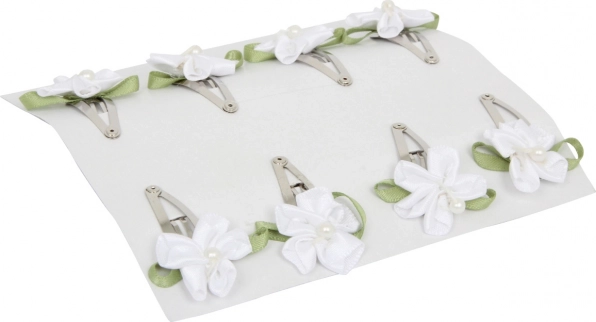 Každá sponka je vyrobená z kovu pre dlhú životnosť a zdobená kvetinami a mašličkami pre príťažlivý vzhľad.
